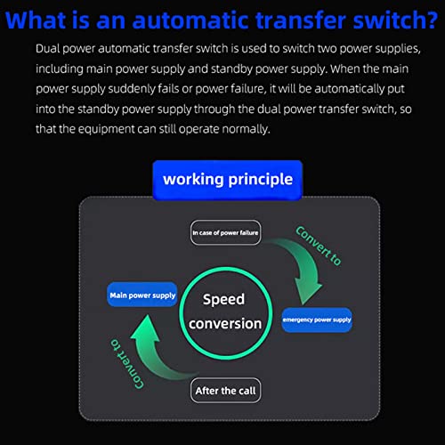 FUNZIONAMENTO FACILE: doppio interruttore di trasferimento dell'alimentazione, che supporta il funzionamento automatico e manuale, commutazione rapida senza interruzioni di corrente, garantendo una trasmissione stabile e affidabile.