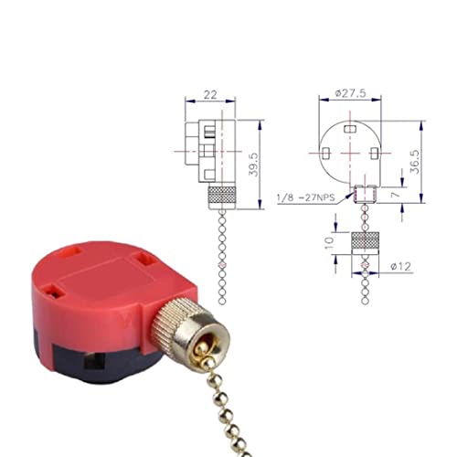 2 pcs Interruttore a ventola del soffitto ZE 268S1 Pullo Interruttore a catena a soffitto Fantatina di tiri a 4 Filo a 3 velocità Interruttore di controllo per armadio rosso con oro