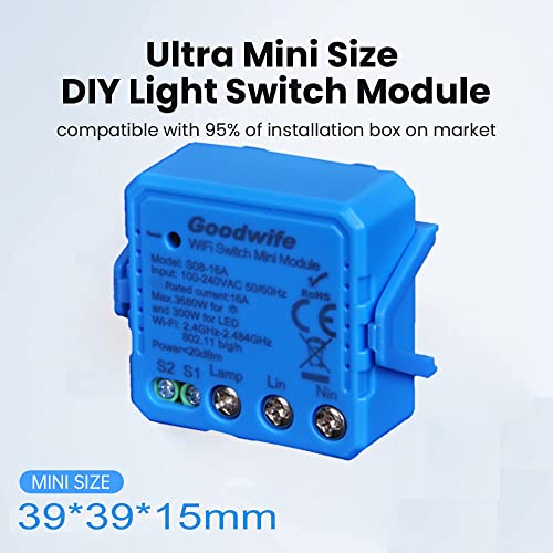 【Migliore compatibilità】 MINIS08-G-1C Modulo interruttore WiFi Porta di cablaggio S1 Compatibile con interruttore Touch;