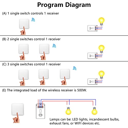Facile da installare: l'interruttore wireless consente di controllare qualsiasi luce in tutta la casa da qualsiasi luogo. Crea istantaneamente un interruttore in qualsiasi posizione senza far funzionare nuovi fili e lacerare pareti. Risparmiare enormi costi di manodopera e materiale rispetto all'interruttore tradizionale della luce della parete. (nastro 3M fornito per una facile installazione)