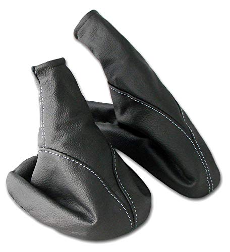 Intersale L&P A099-9 Set Cuffia Leva Cambio e Cuffia Freno a Mano - Opel Astra G - Vera Pelle Nero - Cucitura Bianco