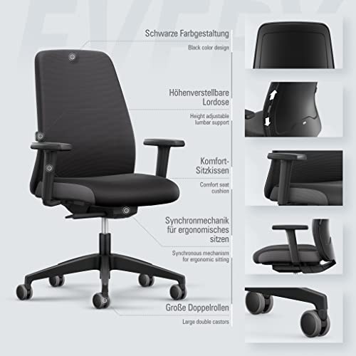 Interstuhl Sedia da ufficio EVERY EV15R - Sedia da scrivania dotata di meccanismo sincrono e supporto lombare regolabile per una seduta ergonomica