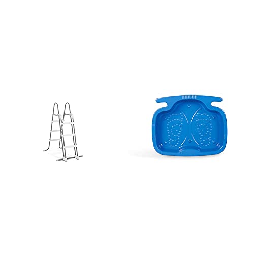 Intex 28072 Scaletta Doppia con Gradini Staccabili, 91-107 cm & 29080 Vaschetta Lavapiedi, Blu, 45.72 x 55.88 x 8.89 cm