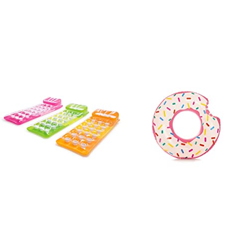 Intex 58890 - Materassino 18 Buchi con Cuscino, Tasche porta bevande, Colori Assortiti, 188 x 71 cm & 59265 - Salvagente Ciambella, Multicolore, Dimensione gonfiata 94 x 23 cm