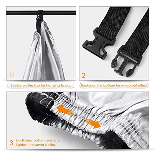 Grazie a queste dimensioni generose (200 * 70 * 110 cm) questa copertura per bici è quasi adatta a varie bici, bici da corsa, mountain bike, ecc.
