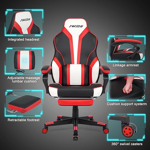 IntimaTe WM Heart Sedia Gaming Sedia Gamer Sedia Gamer Sedia da Gioco Sedile Gamer Sedia da Computer Sedia da Ufficio Sedia girevole Sedia da Lavoro Sedia da Corsa Sedia in Pelle (Rosso)