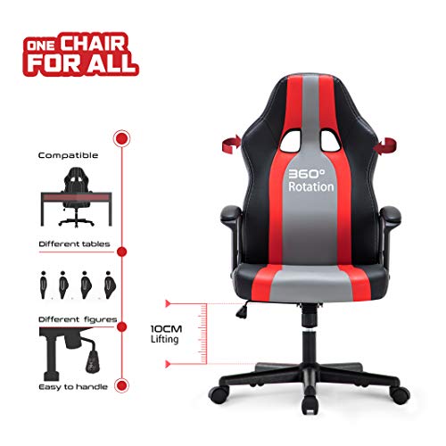 ❤Design intelligente e modellazione unica:-- meccanismo di inclinazione non fisso, basato sul tuo peso elasticità inclinazione 18 gradi, la poltrona di inclinazione complessiva aiuta a mantenere la postura corretta, così come pausa pranzo informale;modellazione unica: Un design a doppio foro come occhi elfici, Con colori vibranti - rosso sangue e grigio morte progettato una faccia carina come Deadpool Portami a casa!