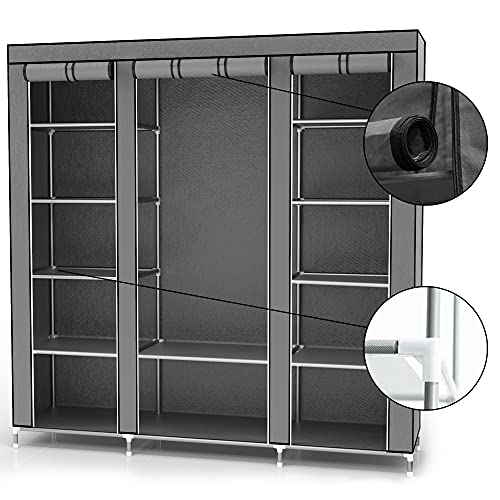 FUNZIONE: I 2 appendini, ripiani e la base completamente utilizzabile di questo pratico armadio offrono spazio sufficiente per creare l'ordine a lungo atteso. Le cerniere integrate proteggono i vestiti anche da polvere, sporcizia e altri agenti esterni, senza dover spendere una fortuna per un costoso armadietto di legno.