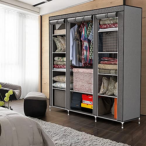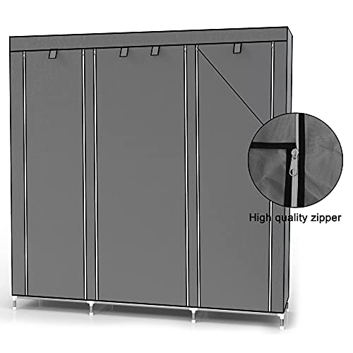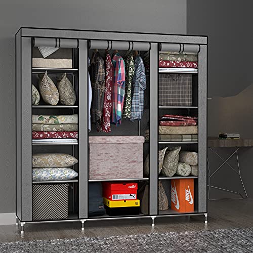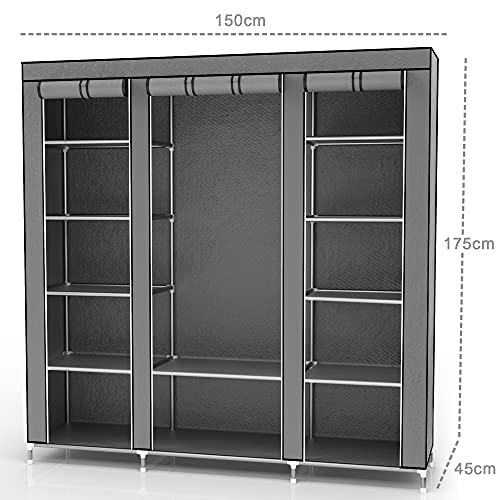 INTIRILIFE Armadio Guardaroba Pieghevole 150x175x45 cm in Grigio Cenere - Cabina Tessuto con Anta Richiudibile, Cerniera Zip e Appendiabiti - Camera da Letto Custodia de Campeggio