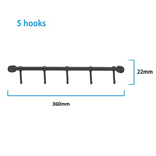 INTIRILIFE Barra appendiabiti in acciaio inossidabile con 5 Ganci in Nero - 35.8 x 3.4 x 2.2 cm - Staffa da parete per barra da cucina con gancio