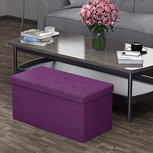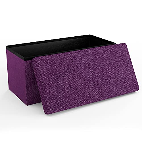 INTIRILIFE Panca pieghevole 76x38x38 cm in VIOLA - Cubo di seduta con coperchio e vano portaoggetti in tessuto con incavi - Cubo di seduta poggiapiedi richiudibile cassetto portaoggetti sgabello