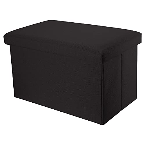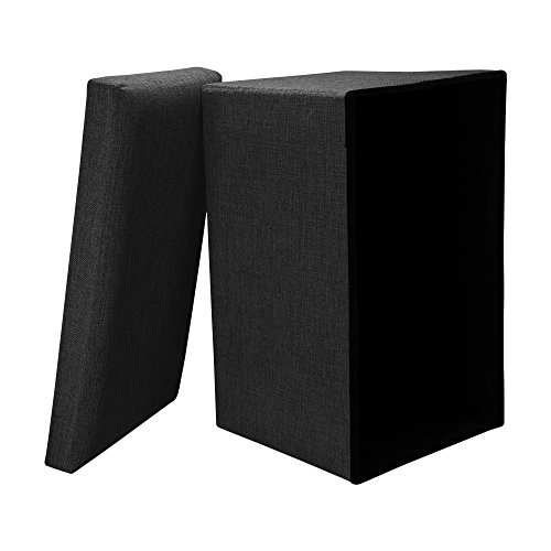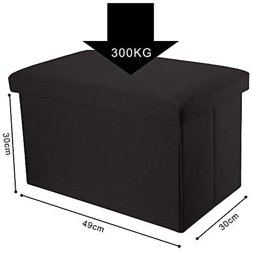 INTIRILIFE Pouf Pieghevole 49 x 30 x 30 cm in Nero Diamante - Cassapanca Cubo Contenitore Imbottito de Tessuto a l'Ottica Lino con Coperchio - Ottomane Poggapiedi Sgabello Panca Poltrona