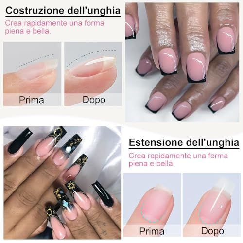 【Kit di unghie in gel multifunzionale】Include una bottiglia da 15 ml di gel costruttore unghie 5 in 1 e 100 modelli di unghie. Il gel per unghie ha le pratiche funzioni di base, ricostruzione, estensione, colla per unghie UV e nail art, una bottiglia può soddisfare le molteplici esigenze della manicure quotidiana.