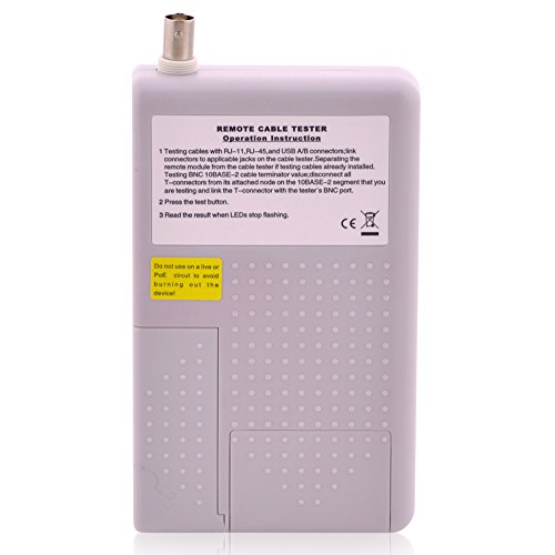 Con questo tester per cavi UTP non schermato) e FTP (schermato) Cavo consente rapido, semplice e affidabile cavo di rete o cavo ISDN a testare il funzionamento. Per USB, Cavo coassiale (BNC), LAN, RJ11, RJ12 e RJ45 cavo.
