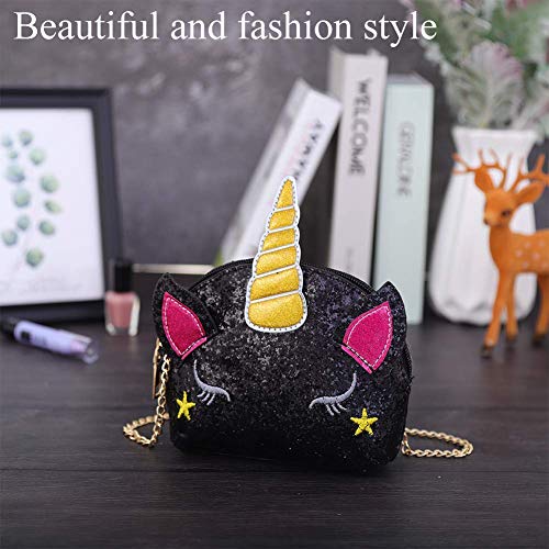 INTVN Delle Donne a Forma di Borsa a Tracolla,Carino Unicorno Crossbody,Personalità Borsa Unicorno Bambina,Borsa a Tracolla Piccola a forma Ragazze Nero