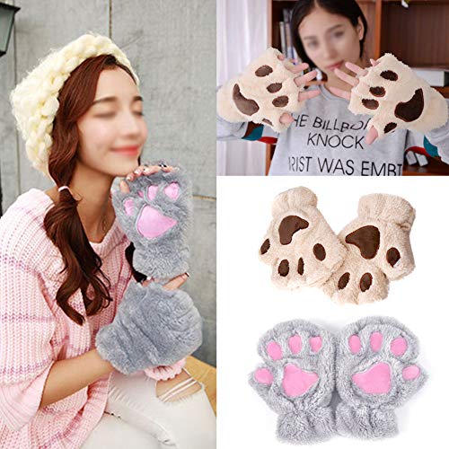 INTVN guanti da donna inverno caldo peluche guanti carino orso zampa artiglio guanti mezze Guanti di peluche