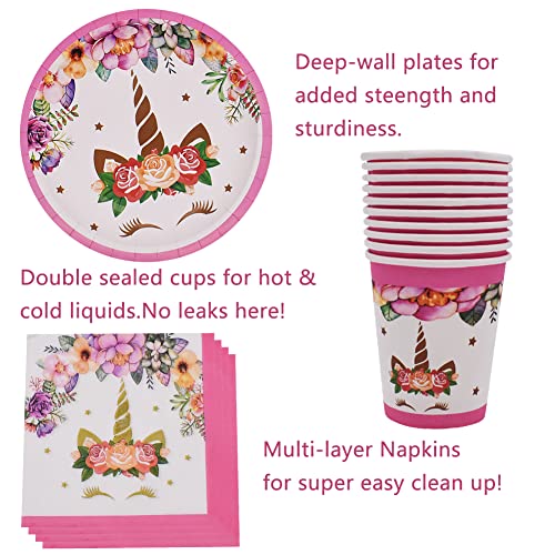 INTVN 48 Pezzi Unicorno Party Kit Compleanno,Set di Articoli per Feste Unicorno per Bambini Ragazze Festa di Compleanno Baby Shower Serve 6 Ospiti