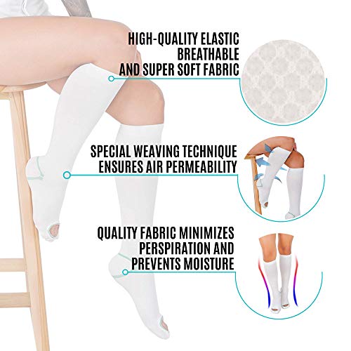 Le calze anti-embolia sono un'ottima scelta per il trattamento di alcune malattie delle gambe. Queste calze a compressione di qualità sono ideali per la prevenzione dei coaguli di sangue, la vena varicosa, il gonfiore delle gambe, l'edema, la trombosi venosa profonda (TVP). Le calze a compressione alta al ginocchio ti daranno una compressione moderata di 15-20 mmHg. Grazie al suo tessuto elastico e di qualità, queste calze a compressione daranno una compressione sufficiente a caviglia, polpaccio e gambe.
