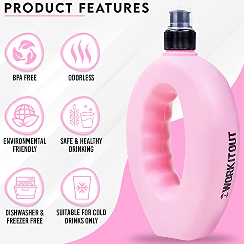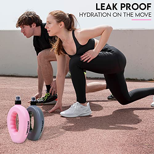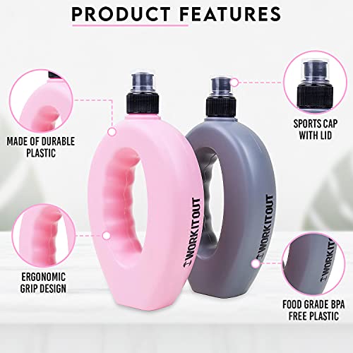 Invero, 2 set di borracce sportive da 500 ml con beccuccio estraibile e facile presa per quando si è in giro, ideali per palestra, allenamento, corsa, sport e così via, grigia e rosa