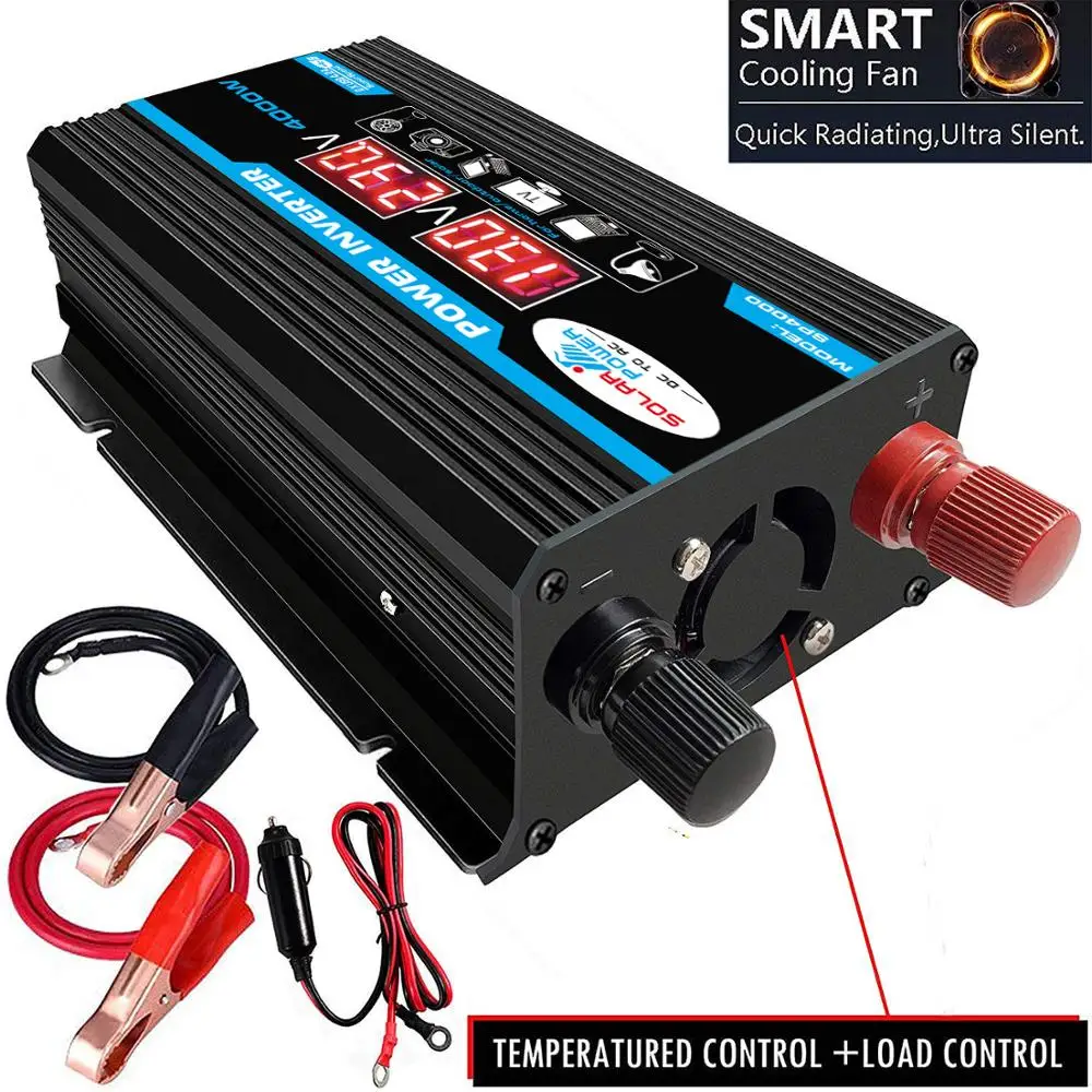 Car Inverter 12V 220V 4000W Max Inverter Voltage Convertor Transformer 12V To 110V/220V Inversor + LCD Display 2 USB