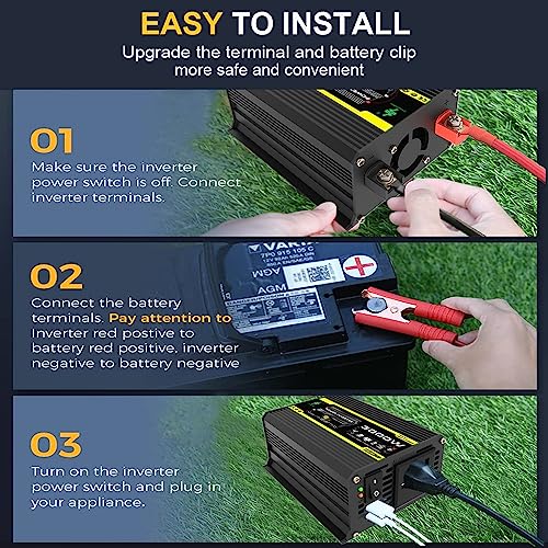 INVERTER 3000W - Inverter per auto con 2 porte USB e presa AC. Potenza di picco: 3000 W, l'inverter viene fornito con una presa accendisigari gratuita e 2 clip per batteria e offre 300 watt/500 watt di potenza continua e 3000 watt di potenza di picco. [Cosa ottieni] Inverter di alimentazione per auto, manuale dell'utente, 2 clip per batteria, 1 presa per accendisigari e servizio clienti al 100%.
