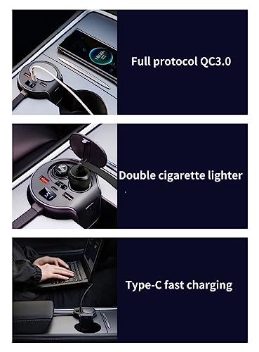 Presa di ricarica USB funzionale: questo inverter di alimentazione per auto è dotato di tre porte di ricarica USB (tipo C, QC3.0 e una porta USB comune) e doppia presa per accendisigari e puoi caricare 5 dispositivi contemporaneamente a velocità ottimale e perfettamente si adatta al tuo telefono, navigatore satellitare, GPS, registratore di guida, frigorifero per auto, ventilatore per auto, luce LED per auto, tablet, controller per videogiochi e altri dispositivi alimentati tramite USB.