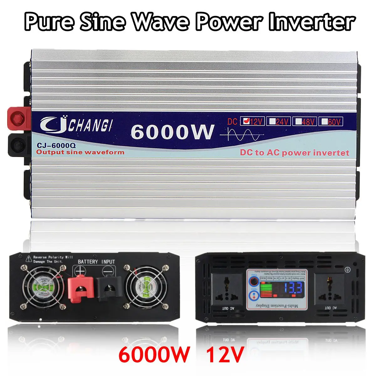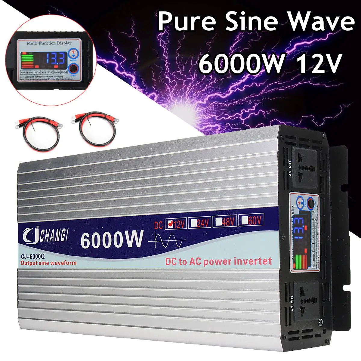 Car Inverter Intelligent Solar Pure Sine Wave Inverter 12V/24V To 110V 4000/5000W/6000W Power Converter Digital Display for Home