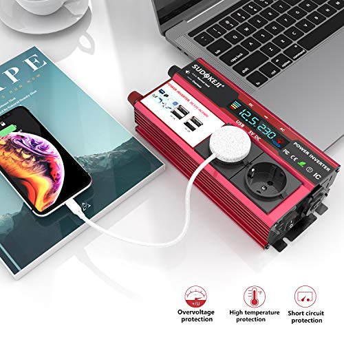 Inverter di Potenza 500W/1000W Inverter per Auto, Convertitore da 12V a 220V con 2 Presa AC 4 Porte USB 4.8A, Power Inverter Trasformatore Auto 12v 220v LCD Display