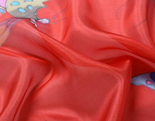 Invisible World Foulard Seta da Donna 100% Lunga Dipinta a Mano con Farfalla per Collo, Testa o Capelli - Rosso
