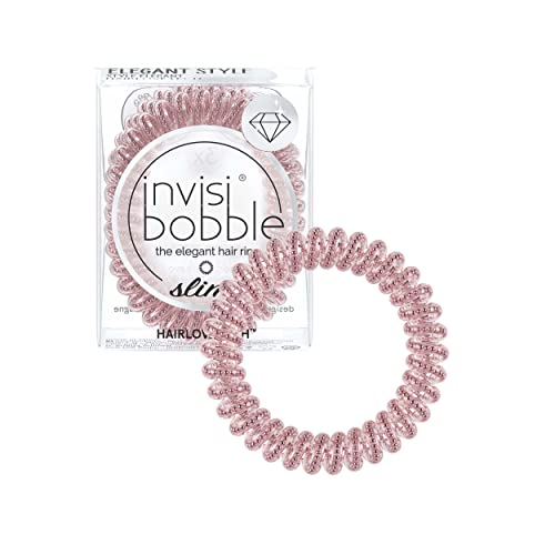 Invisibobble elastici per capelli Rosa metallizzato Slim x3 I Elastici per capelli a spirale per donne e uomini I Non lasciano i segni I Forte tenuta