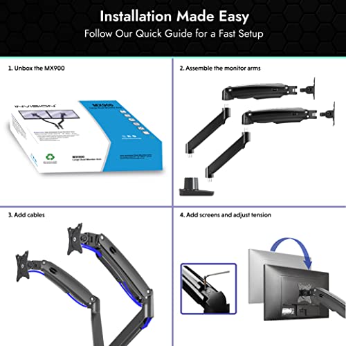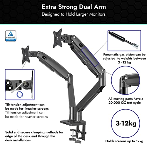 Invision Braccio Doppio Monitor Portata Lunga Scrivania Supporto per 22-32" Schermi, VESA 75/100mm Regolabile in Altezza Inclinazione Girevole e Rotazione, con Morsetto Peso da 3-12kg (MX900)