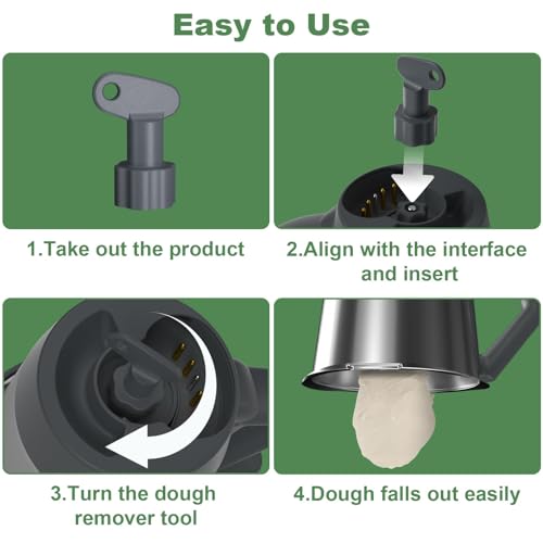 Facile da usare: Capovolgere la ciotola dell'impastatrice e fissare l'accessorio per la rimozione dell'impasto sul fondo e tenerlo in posizione. Ruotando, l'impasto si staccherà.