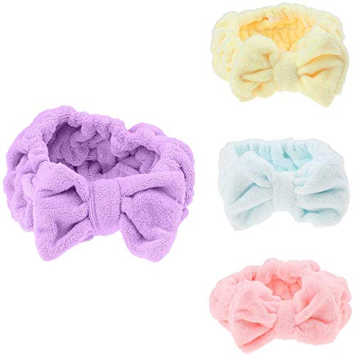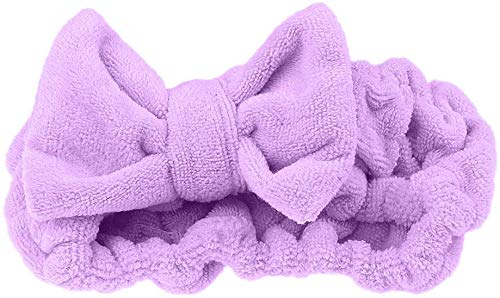 Inzopo - Fascia elastica per capelli, con fiocco, per trucco, spa, doccia, colore viola