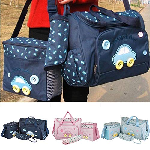 Inzopo Set di 4 pezzi, impermeabile, borsa per cambio pannolino, borsa per bebè, a mano, colore: rosa