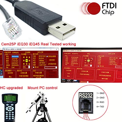 Ioptron - Cavo di controllo seriale RS232 per telescopio, da USB a RJ9, adattatore convertitore