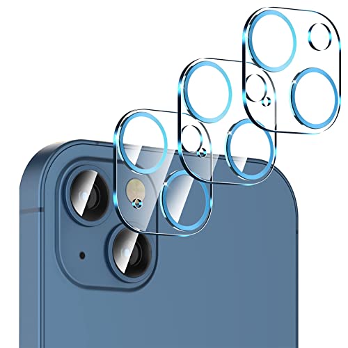 IOPYKKOA [3 pezzi di protezione per obiettivo fotocamera compatibile con iPhone 13/13 Mini vetro temperato, [compatibile con custodia] [antigraffio] [facile installazione] - Cerchio blu
