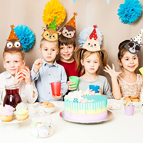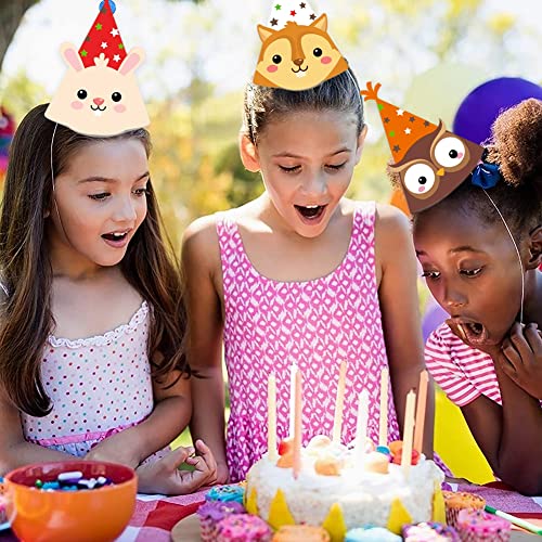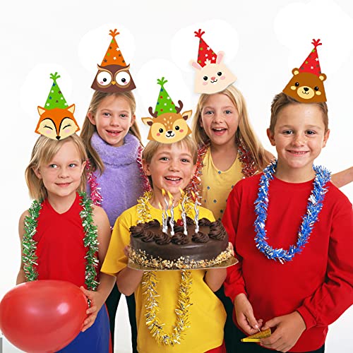 IOSCDH 8pcs tema animale del bosco, festa decorazione bambini, Cappello Festa Compleanno Bambini Adulto, Compleanno Cappelli a Cono, Festa di Decorazioni per Foto, Bambini Cappellini Carta Colorati