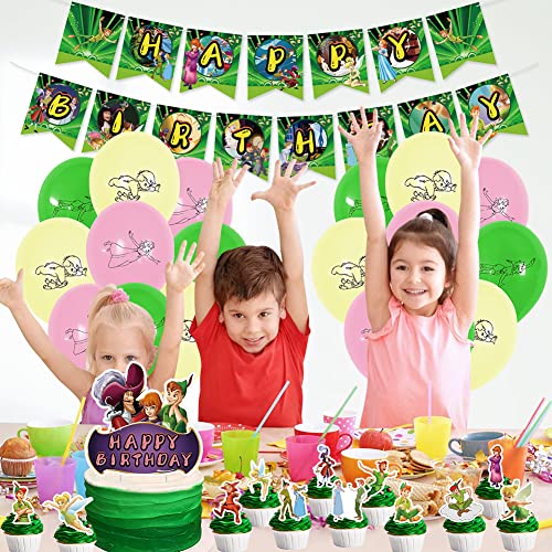✦ Decorazioni per feste fata dei fiori - Palloncini in lattice da 18 pezzi, Topper per torta da 1 pezzo, Topper per cupcake da 12 pezzi, Banner di buon compleanno da 1 pezzo, Sono ideali per aggiungere una dose extra di divertimento a qualsiasi evento di intrattenimento.