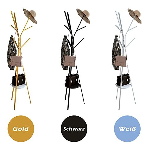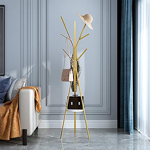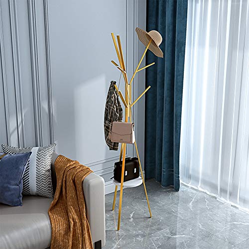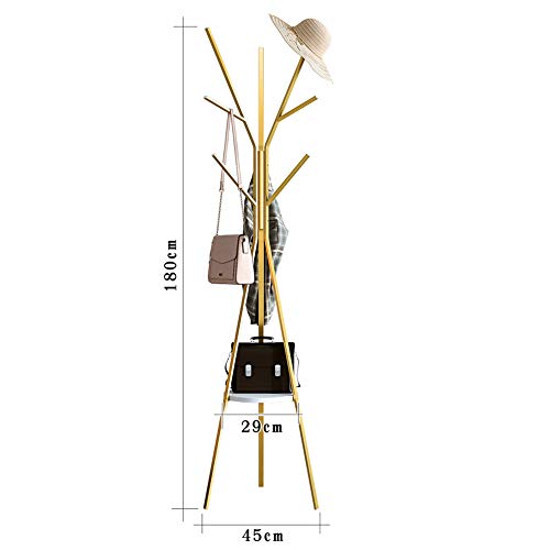 IOTXY Appendiabiti da pavimento per corridoio, albero, altezza 180 cm, con ripiano e 9 ganci per borse, giacche, sciarpe, freestanding Metal Coat Rack Tree, oro