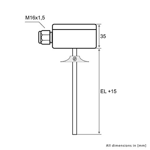 IOVEO 041KF01210 - PT100 - Sonda di temperatura canale con alloggiamento con flangia di montaggio, lunghezza di installazione 100mm