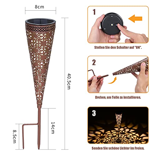 IP65 Impermeabile Lampade Solari da Giardino, 2 Pcs Lampada Solare da Esterno,Luci Solari Esterno Giardino per Balconi Prato Vialetto Natale (Ruggine)
