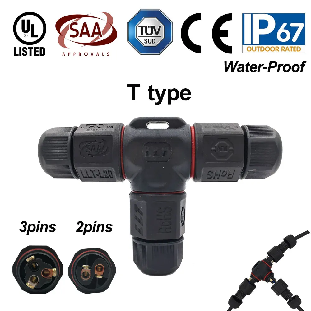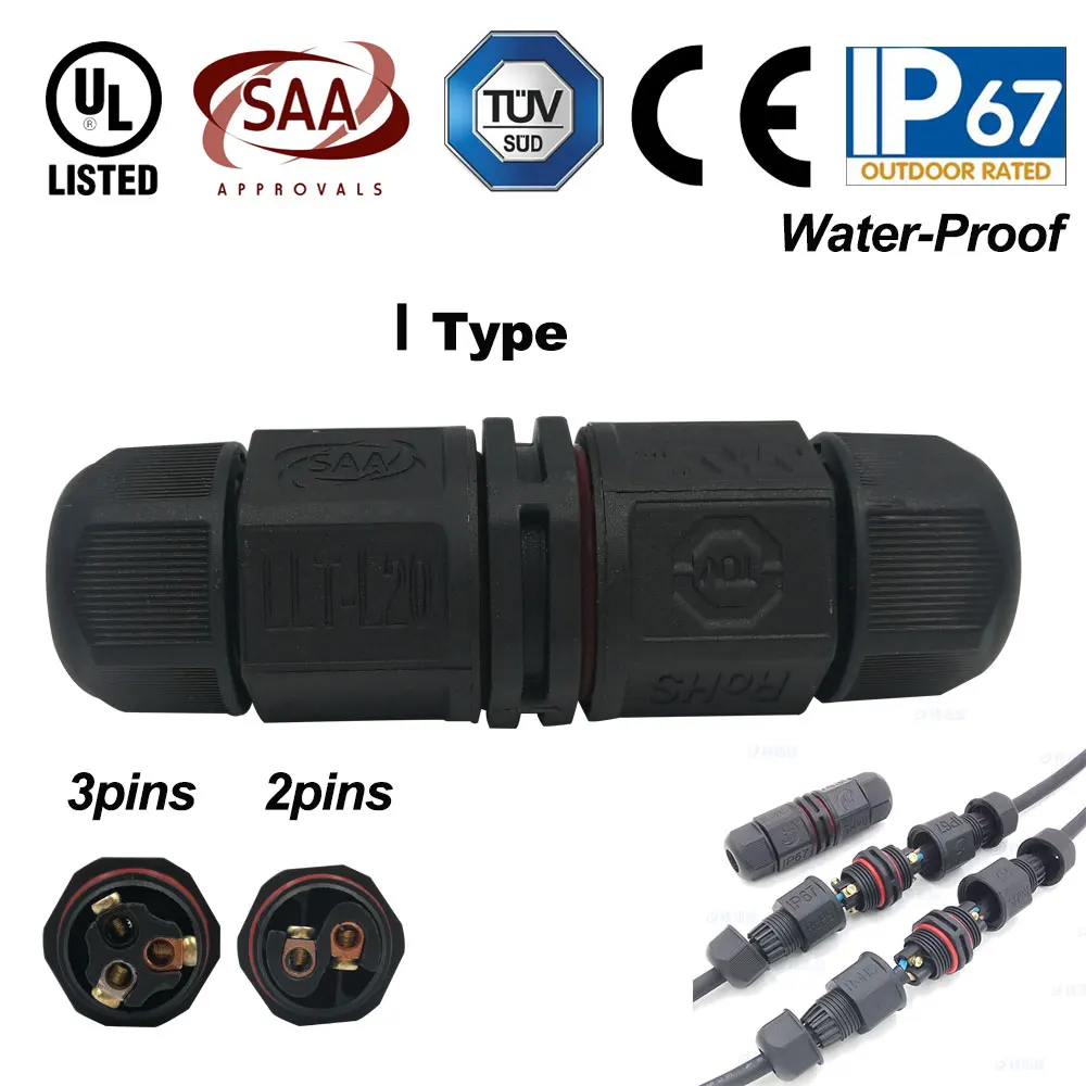 IP67 Waterproof Connector 2 Pin 3 Pin Electrical Terminal Wire Adapter Connector Screw and Soldering Pin connector for LED Light