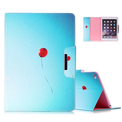Per iPad Air 2/ iPad 6 Cover, Aeeque Portafoglio a Lirbo per iPad Air 2/ iPad 6 9.7" Blu Custodia Premium di Pelle PU Magnetico Funzione di Supporto Protettivo Flip Rigida con Modello Palloncino Rosso
