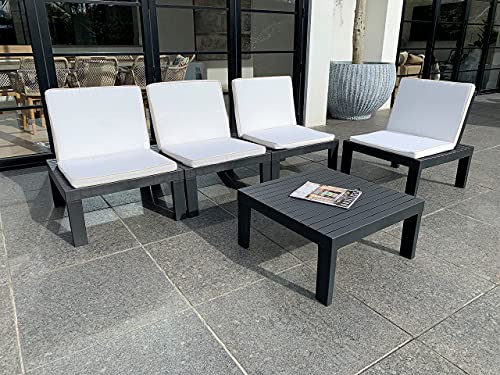 Ipae Progarden 84117 Casa più, Set 5 Pezzi da Esterno salottino Colore Antracite con Cuscini, Materiale in Resina, sedute 78x78xh70, modulo Multifunzione cm 78x78h32, Polipropilene