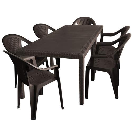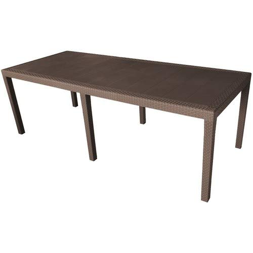 Ipae-Progarden Queen, Tavolo rettangolare allungabile effetto rattan, Marrone, 220 x 90 x 72 cm
