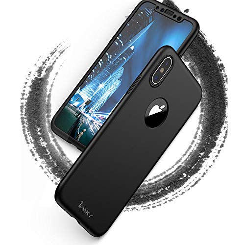 IPAKY Custodia Originale iPhone XR, iPhone X, iPhone XS, iPhone XS Max TPU Ultra-fine, Protezione 360° + Vetro temperato / 4 Colori (iPhone X/iPhone XS, Nero)
