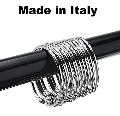 CONTENUTO: 20 anelli in metallo per tende della doccia con diametro interno da 50 mm. Prodotto realizzato al 100% in Italia.
