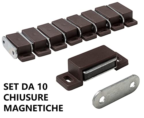 IPEA Chiusure Magnetiche per Mobili, Porte, Armadi, Cassetti - 10 Pezzi - Chiusura Magnetica con Calamita per Ante e Credenze - Cerniera Magnetica - Fermo Magnetico per Cucina e Casa - Marrone