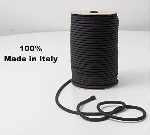 IPEA Corda di Cotone Macrame Nero - 6 mm x 100 Metri - Rotolo Super Lungo - Made in Italy - Filo da Cucito per Lavorazioni Artigianali, Decorazioni, Arazzi e Tende - Cordoncino - 0,6 cm