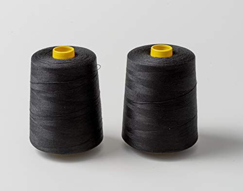 IPEA Filo da Cucito Nero per Macchina da Cucire e Tagliacuci - 2 Grandi Bobine da ben 9000 metri (18000 m totali) - Filato in Poliestere per Cuciture - Vari Colori a Scelta - Nero - Altezza 12 cm